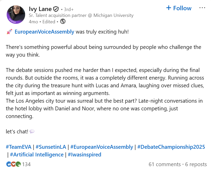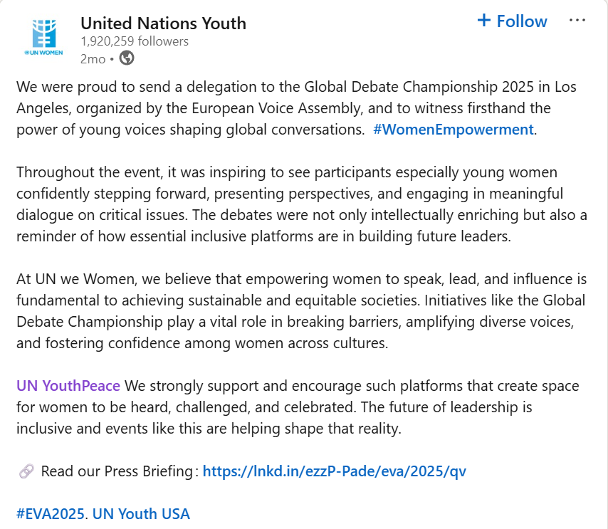 Organized by the European Voice Assembly (EVA), the championship is designed to empower individuals who aspire to transform perspectives through the power of debate.